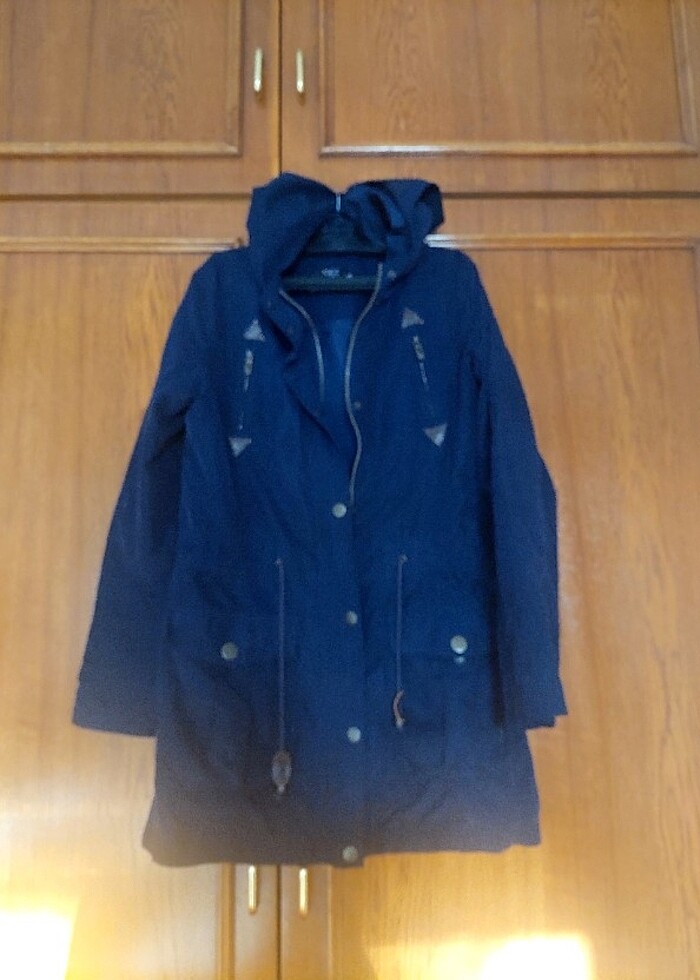 Lacivert ince trenckot. Seri parçalarda hafif soyuma var fotoğraflarda belli oluyor