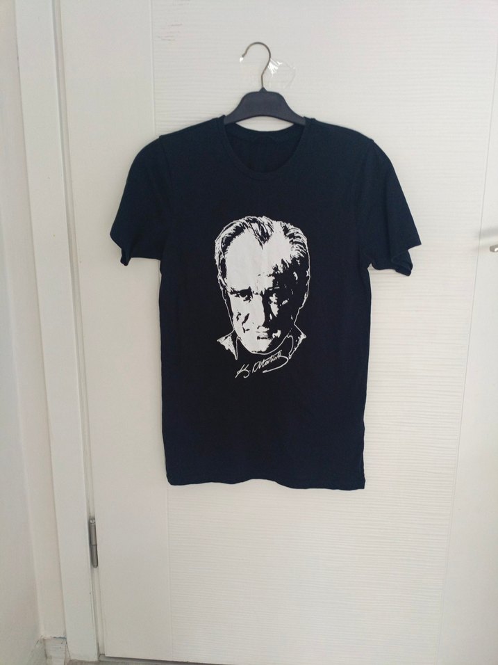 Yeni. Defosuz.Sadece 1 kez giyildi. 100% Pamuk siyah , bol kesim ve önünde baskılı portre ile. Kısa kollu ve yuvarlak yakalı, trend günlük tarz için uygun. Unisex. ÖLÇÜ ⭐İki koltuk arası 42 cm Boy 67 cm⭐