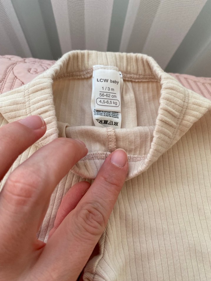 LCW baby markalı, 1-3 ay bebekler için bej renkli, fitilli içlik. 4,5-6,5 kg arası bebeklere uygun, yumuşak ve rahat kumaştan üretilmiştir.