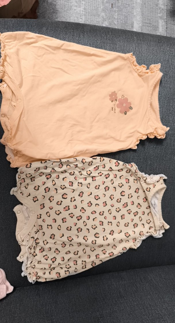 ikili kız bebek tulumu. bu şekilde alındığı için takım olarak koymak istedim. 3-6 ay kız bebekler için uygundur. fırfırli sıfır kolludur. az kullanılmıştır.