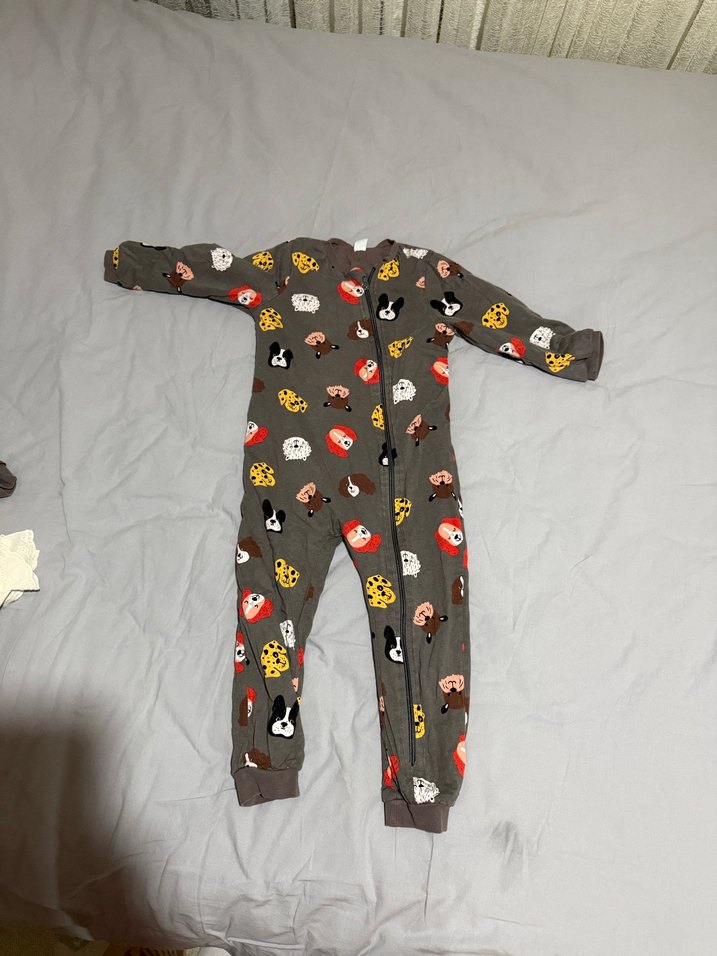 LCW Baby markalı gri erkek bebek tulumu, uzun kollu ve fermuarlı. Yumuşak fleece kumaştan, baskılı desenli, bisiklet yakalı ve sokak stili.