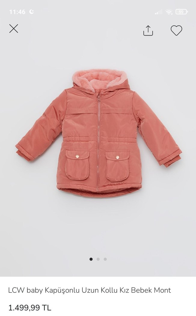 Pembe, kapüşonlu ve kürk detaylı kız bebek montu. Uzun kollu, cepli ve yumuşak tüylü kumaştan, rahat kesimli sokak stili mont. nar çiçeği rengidir. kollarında hafif tüylenme dışında hiç bir sorunu yoktur