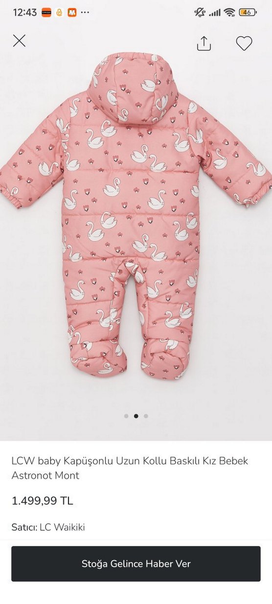 Pembe renkli, kuğu desenli ve kürk detaylı kız bebek astronot montu. Bisiklet yaka ve uzun kolludur, bebeğinizi sıcak tutar. ❄️