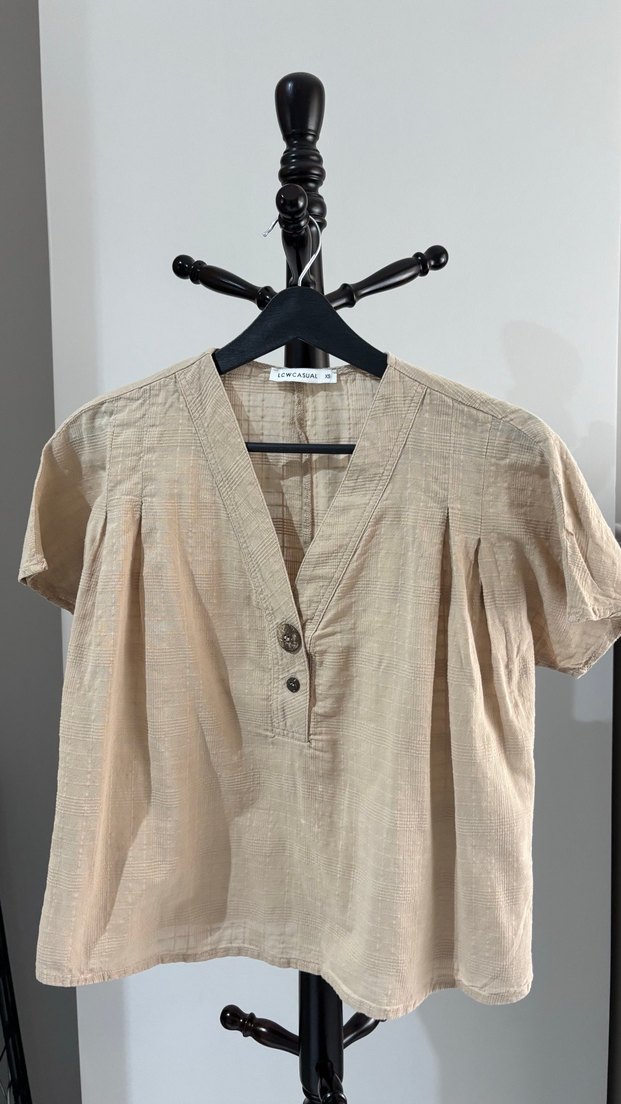Lcw Bej Kısa Kollu Keten V Yaka Gömlek