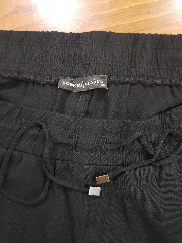 LCW Beli lastikli Siyah Kadın Pamuklu Pantolon
