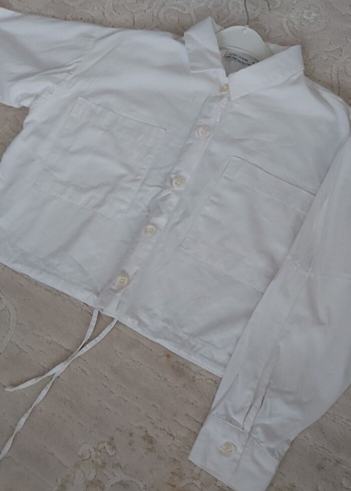 Buyuk cepli oversize beyaz kosa tok kumaşli bir gömlek hiç giydigimi hatirlamiyorum dolabimda asik duruyor