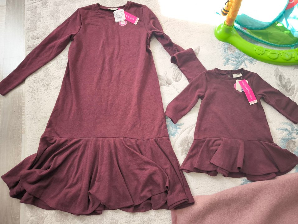 Bordo renkli uzun kollu ve yuvarlak yakalıdır. Yumuşak ve sıcak kumaştan, rahat kesimlidir, etek kısmında fırfır detayı vardır. Anne bedeni s ama kesimi geniştir. kız bedeni 12-18 aydır. ölçülerini yükledim. Kullanılmamış Etiketlidir.