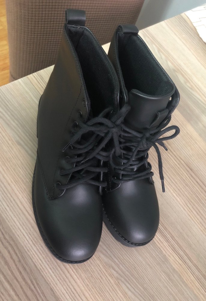 Siyah, gotik tarzda, blok topuklu kauçuk kadın botları. Düz desensiz, günlük kullanıma uygun şık ve rahat tasarım. 39 numara hiç giyilmedi