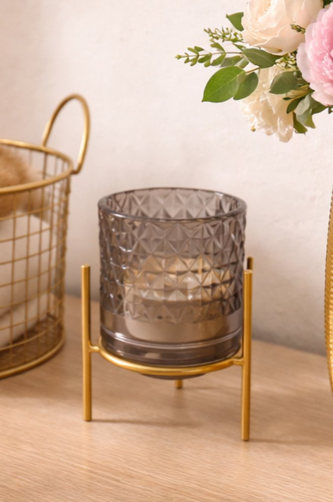 Lcw cam mumluk ve altın renk metal stand ile şık bir görünüm sunar. ️sunumlarda mutfakta her alanda kullanılır