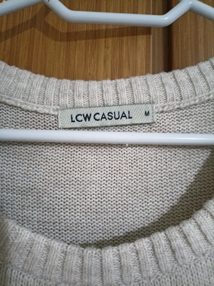 LCW Casual markalı, bej renk örgü yün kazak, yuvarlak yaka ve uzun kollu. Rahat kesimiyle günlük sokak stili için uygun.M beden, yepyeni