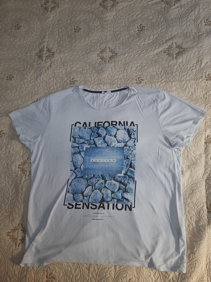 Pamuklu, kısa kollu, bisiklet yakalı beyaz tişört. Baskılı "CALIFORNIA SENSATION" yazısı detayı bulunur. Rahat kesim, günlük kullanım için uygundur. ÖLÇÜLEN ÖLÇÜLERİ: boy:70 cm en(omuzdan omuza):48 cm en(koltuk altından):63 cm kol uzunluğu(omuzdan):19 cm kol uzunluğu(koltuk altından):6 cm