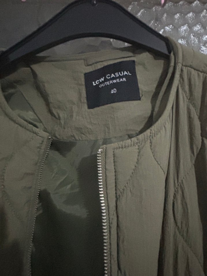 LCW Casual keten kumaştan, fermuarlı ve bol kesim yeşil ceket. Yuvarlak yaka ve uzun kollu, günlük kullanıma uygun rahat bir model.