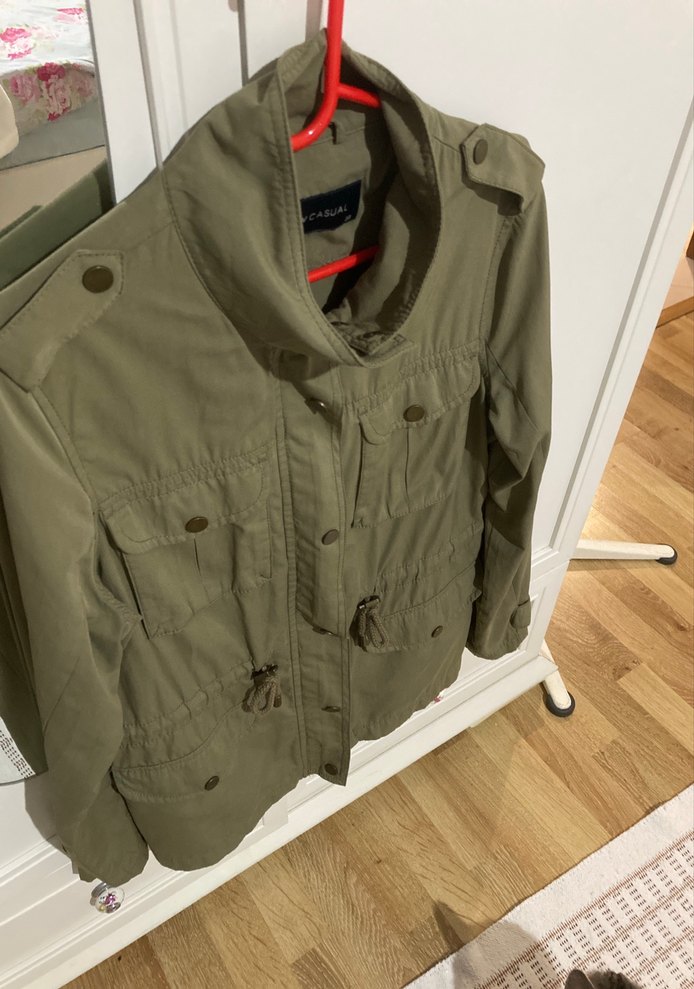 LCW Casual markalı haki yeşil sokak stili için uygundur. Üzerinde "LCW CASUAL" ve 38 numara etiketi bulunmaktadır.Baharlık kumaştır çok az ve temiz giyilmiştir