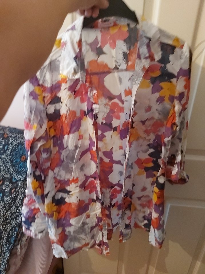 Rahat kesim, uzun kollu, renkli çiçek desenli kadın gömleği, yumuşak ince kumaştan yapılmıştır. Günlük kullanıma uygundur. en 51 cm,boy 70 cm