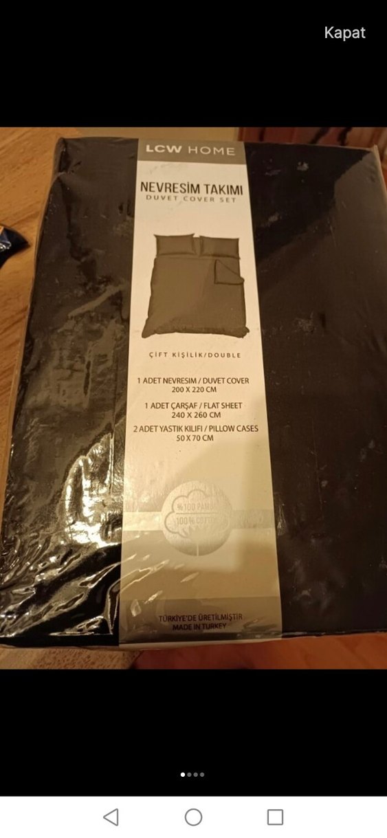 Siyah çift kişilik nevresim takımı; 1 adet 200x220 cm nevresim, 1 adet 240x260 cm çarşaf ve 2 adet 50x70 cm yastık kılıfı içerir. ️ 1 defa kullanıldı yıkandı paketli değildir Yüzde yüz pamuk..