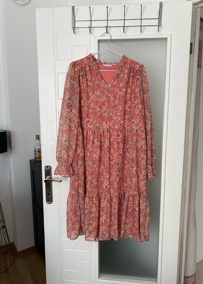 Lcw Classic Çiçekli Uzun Kollu Şifon Elbise Hamile Elbise Tül El