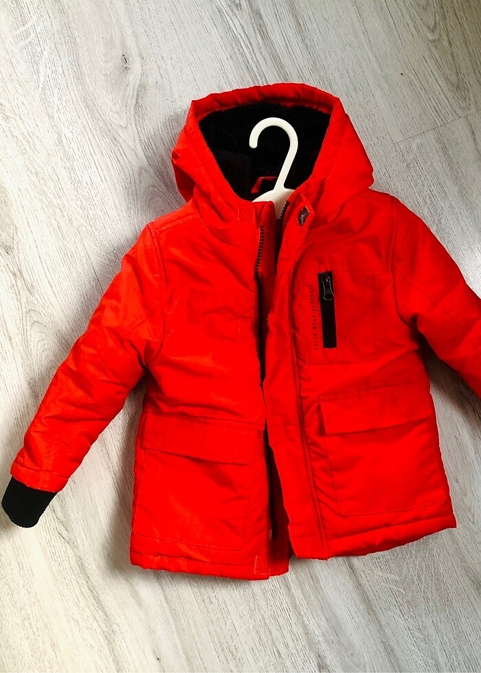 Çok az kullanıldı sıfıra yakın kalın içi tüylü su geçirmez korunaklı bir mont canlı kırmızı rengi iç kürkü siyah ..karda yağmurda güvenerek giydirebilirsiniz