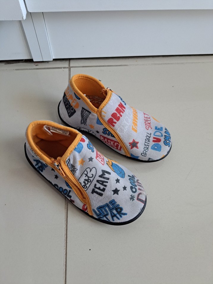 Baskılı desenli, renkli çocuk , kolay giyilen cırt cırtlı ve kaydırmaz kauçuk tabanlıdır. sorunu yok Her yerini çektim bakabilirsiniz #panduf #lcw #zara #mango