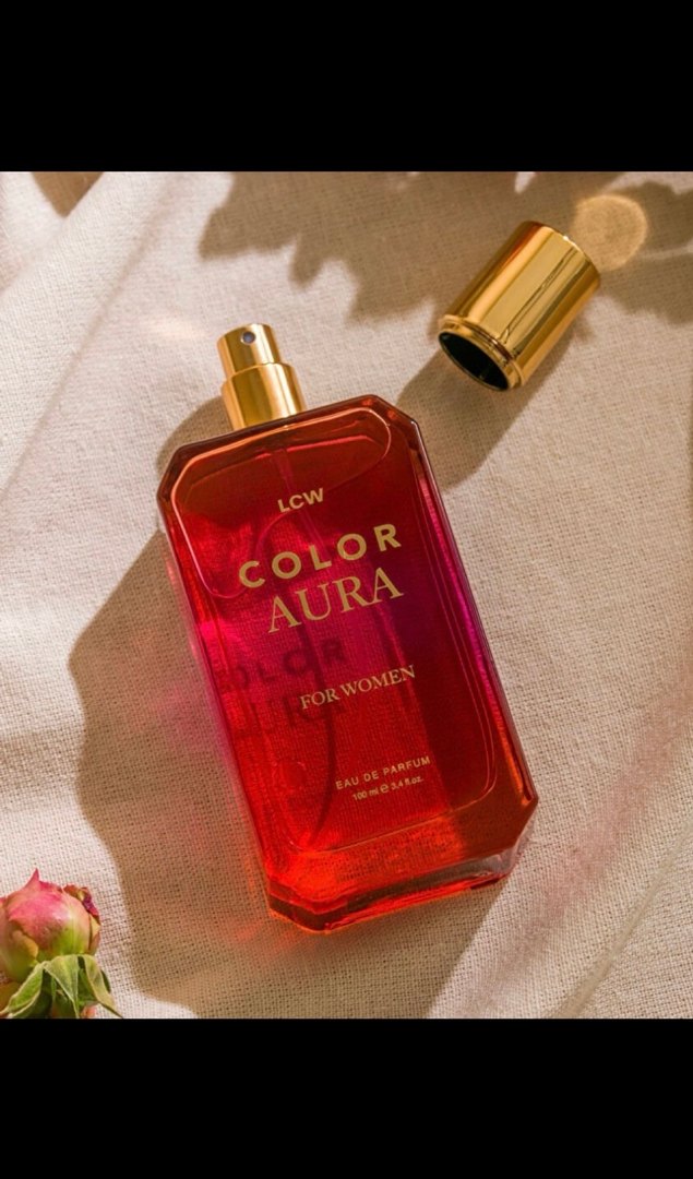 LCW Color Aura kadın parfümü, 100 ml şişede altın renkli sprey kapağıyla sunuluyor. Canlı bir koku deneyimi sağlar. 2 3 kez kullanıldı. Kokusu bana hitap etmediği için satıyorum.