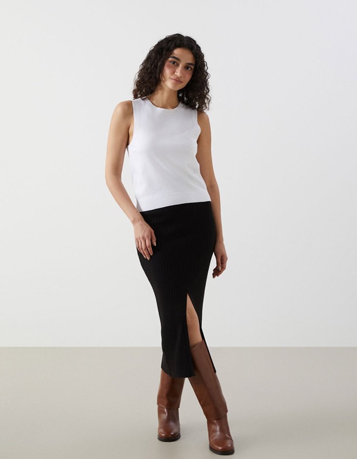 LCW Comfort Siyah Beli Lastikli Dokulu Kadın Triko Etek