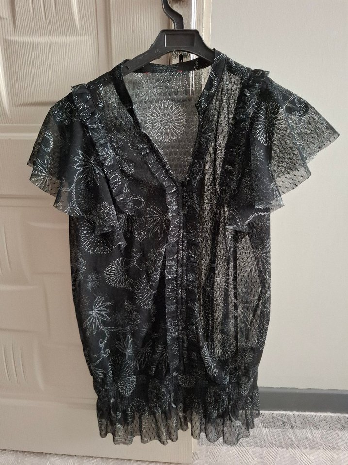 V yaka ve desenli detaylara sahip, dantel süslemeli bol kesim bluz. Yumuşak şifon kumaştan üretilmiştir, günlük kullanıma uygundur. #lcw #defacto #kadınbluz