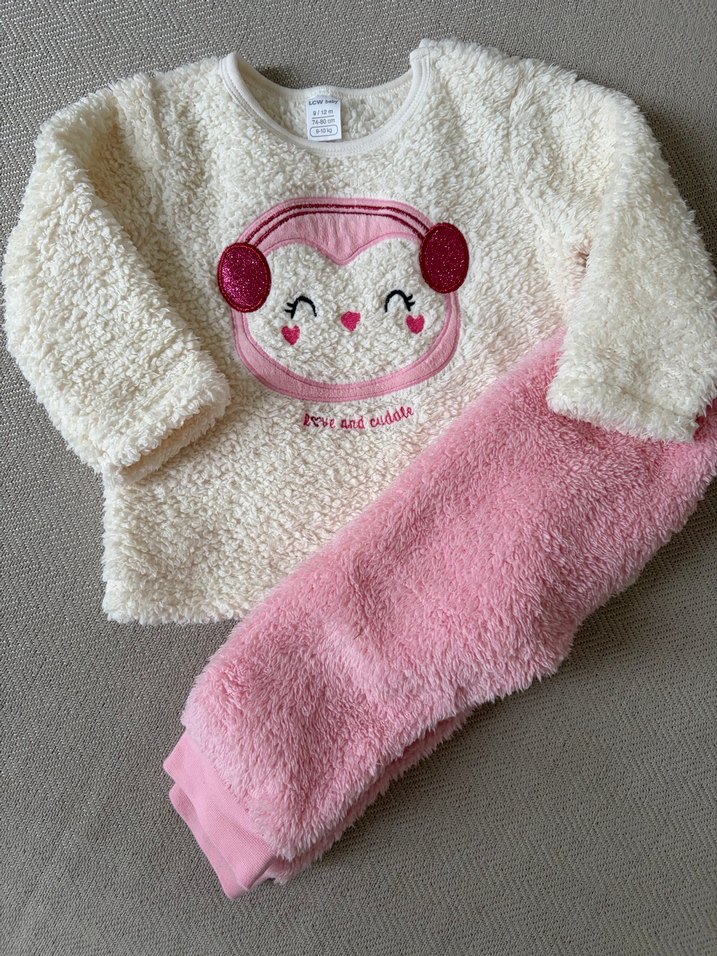 LCW Desenli Bebek Kız Takımı Yumuşak örgü dokulu, uzun kollu bebek kız takımı. Pastel pembe renkli desenli üst ve rahat pantolondan oluşur. Yumuşacık tutar, hiç giyilmedi yeni ürün. 9/12ay. LCW marka. #lcw #bebekpijama #kızbebek