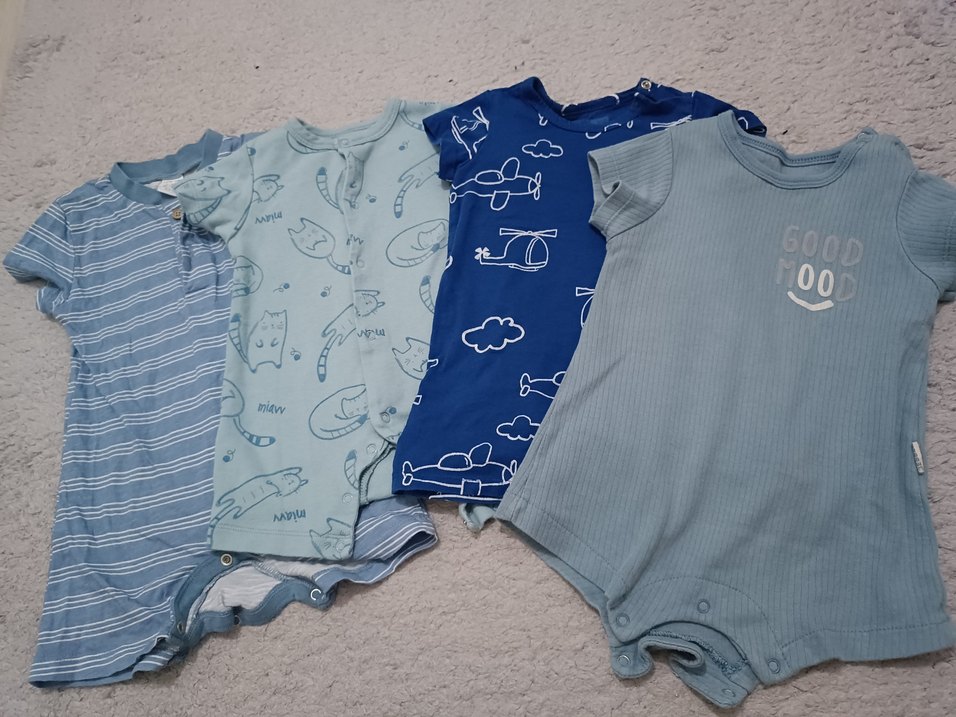 iki üç kez anca kullanıldı bunlarda. 4 tulum tek fiyat Yumuşak pamuklu, kısa kollu ve bisiklet yaka üç adet mavi ve gri tonlarda örme bebek body seti. Desenli ve düz modeller içerir.