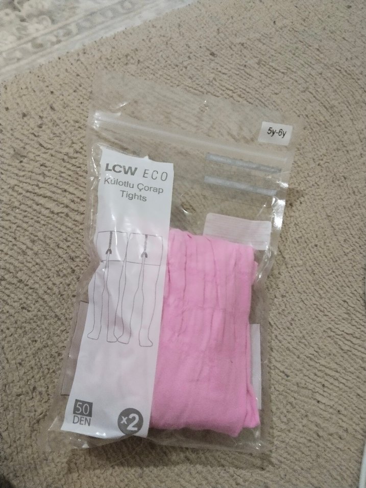 LCW ECO markalı, 5-6 yaş için pembe desenli, yumuşak keten kumaştan yapılmış 50 DEN kalınlığında 1 adet kilotlu çorap