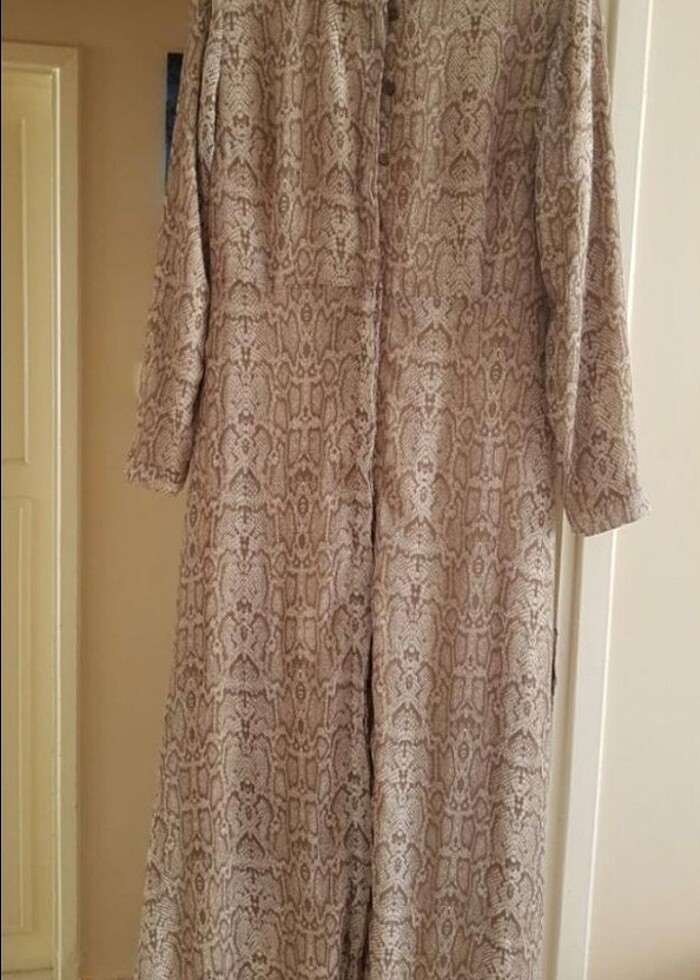 bi iki defa kullanildi ici astarli uzun yilan desen elbise boyu 125 cm iki koltuk alti 45 cm bel 40 cm