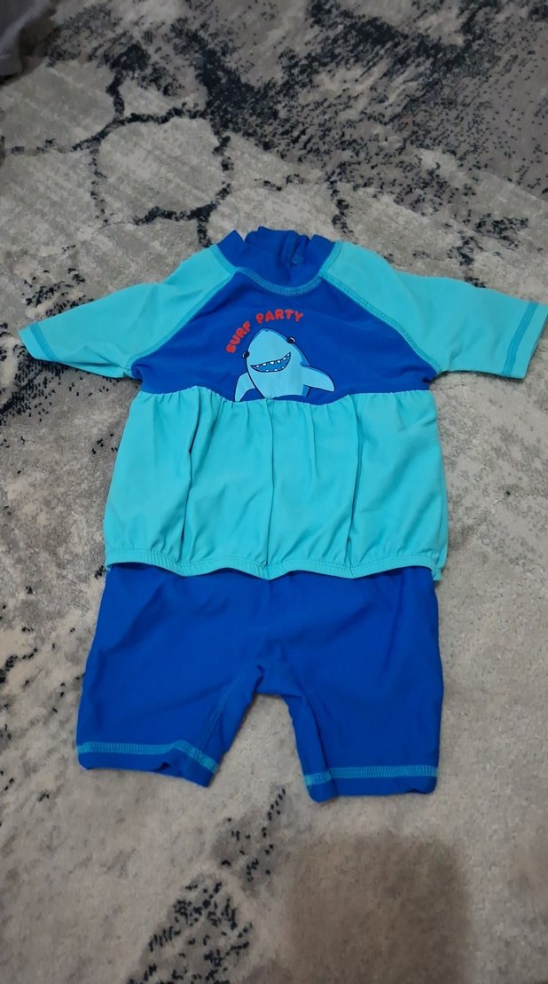 lcw Canlı mavi tonlarında, kısa kollu erkek çocuk mayosu, eğlenceli köpekbalığı baskısı ve rahat kesimiyle su aktiviteleri için uygundur. 1 kere kullanildi