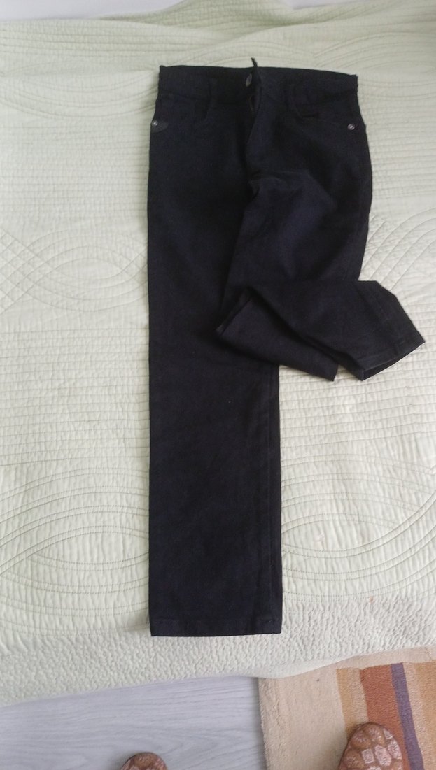 Düğmeli, siyah renkte regular fit erkek çocuk denim pantolon. Desensiz, trend ve rahat bir stile sahiptir. esnek kumaşa sahip çok rahattır 1 defa giyildi