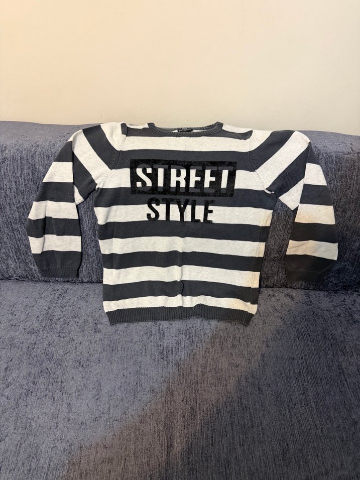 Lcw marka. 8-9 yaş. Çizgili. Yazılı. Triko kazak kusuru yok