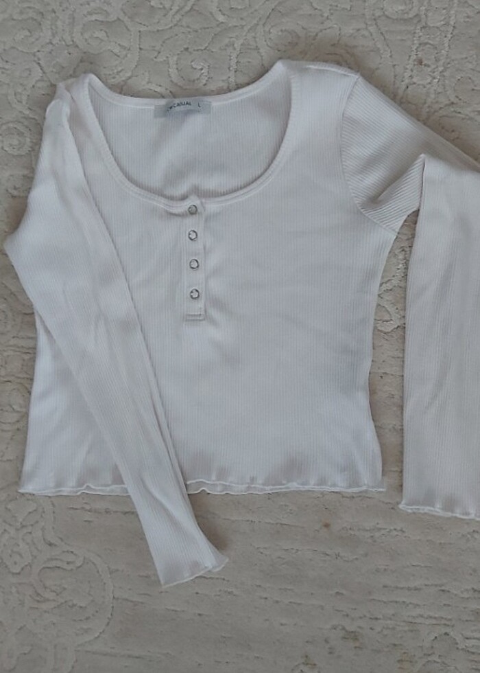 Ucu firrfirli kisa boylu fitilli beyaz body