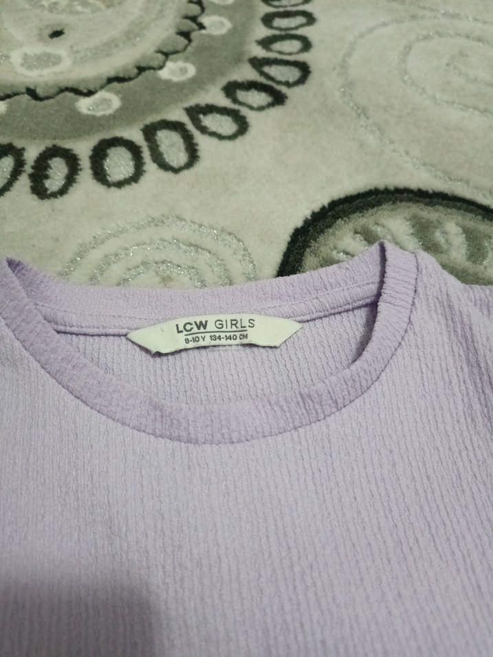 LCW Girls markalı, pastel mor renkli, uzun kollu ve yuvarlak yakalı pamuklu, bol kesim kız çocuk tişörtü. Rahat ve sade normcore tarzda, baskılı desene sahip.
