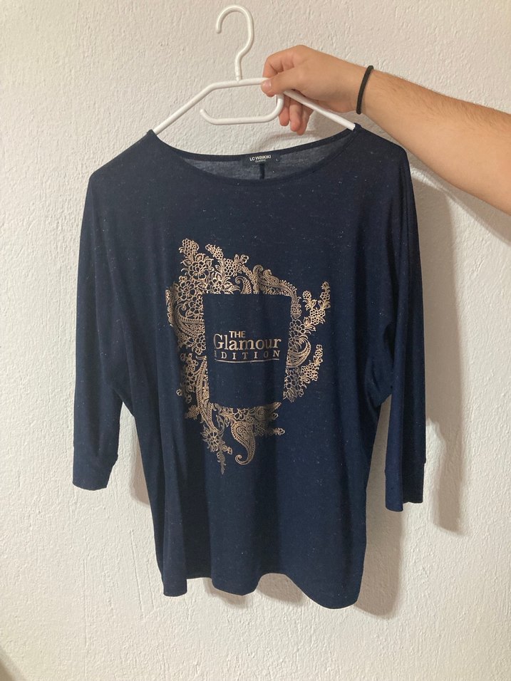 LCW Gold Baskılı Simli Truvakar Kol Lacivert Bluz-L (etiketi koparıldı ama hiç kullanılmadı)