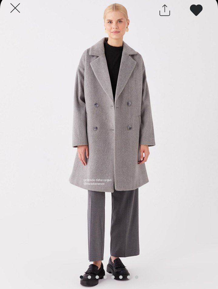 LCW gömlek yaka oversize Gri Çift Düğmeli kaşe Kaban palto