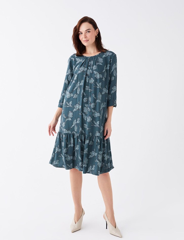 LCW Grace Ekru Bisiklet Yaka Desenli Elbise Ürün hiç kullanılmadı etiketi üstündedir. Uzunluk: 175 cm Göğüs: 85 cm Bel: 64 cm Basen: 90 cm Manken 38 beden ürün giymektedir. Kalıbı oversize, viskoz kumaş