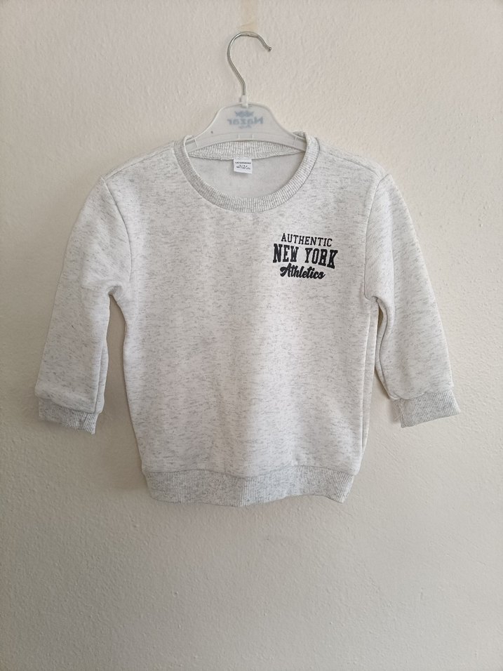 Gri renk, yuvarlak yaka ve uzun kollu erkek çocuk sweatshirtü. Rahat kesimli, yumuşak ve sıcak kumaştan, "AUTHENTIC NEW YORK Athletics" baskılıdır. ️