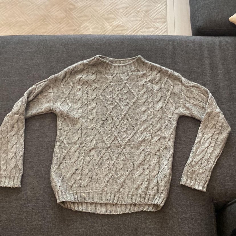 Grirenkli, örgü kadın kazak, yuvarlak yaka ve uzun kollu, bol kesimdir. Günlük kullanım için rahat ve bohem tarz sunar.