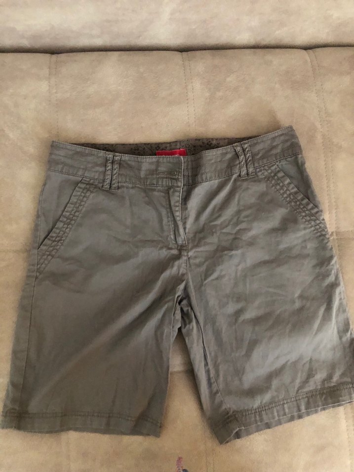 Haki dokuma kumaştan, midi uzunlukta ve düz tasarımlı, rahat kesim kadın bermuda şort. Günlük kullanıma uygundur. Belden bacağa 45 cm