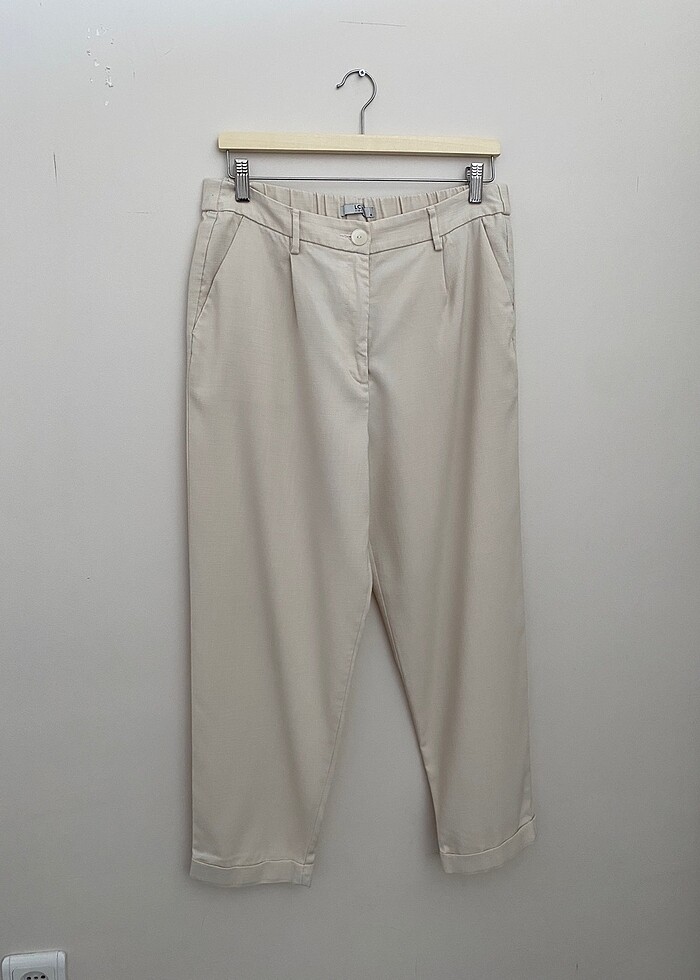Krem rengi havuç kesim pantolon, hiçbir sorunu yok