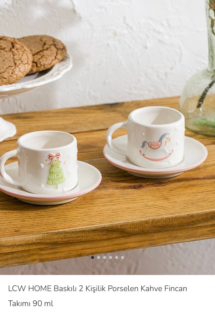 LCW HOME markalı, 90 ml kapasiteli, pastel renkli detaylara sahip beyaz porselen 2 kişilik kahve fincan takımı. ☕