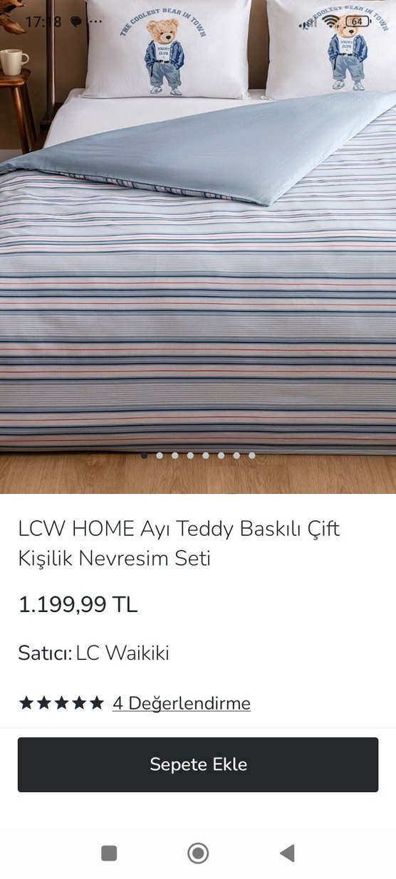 LCW HOME çift kişilik nevresim seti, açık bej çizgili desen ve ayı teddy baskısıyla yumuşak ve rahat bir kumaşa sahiptir. ️