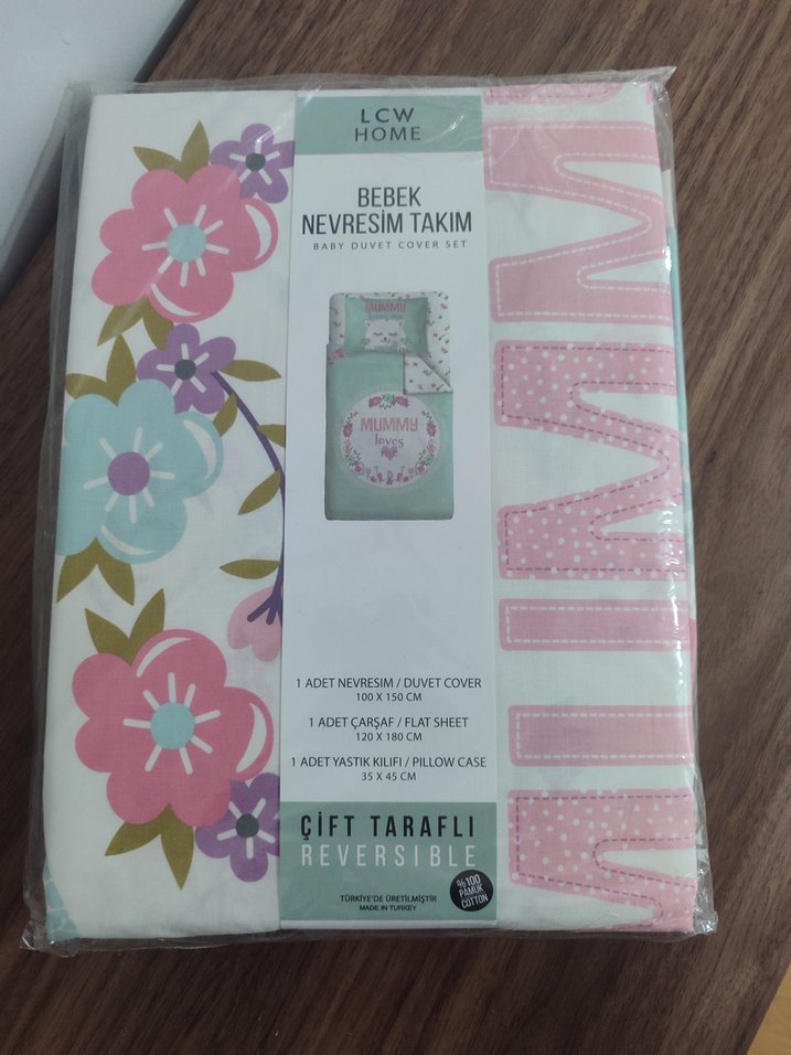 LCW Home bebek nevresim takımı, pastel pembe ve çiçek desenli çift taraflı tasarıma sahiptir. Nevresim, çarşaf ve yastık kılıfı içerir.