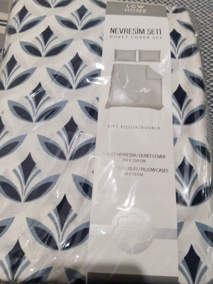 LCW Home çift kişilik beyaz ve gri desenli nevresim seti. 200x220 cm nevresim ve 50x70 cm iki yastık kılıfı içerir. ️