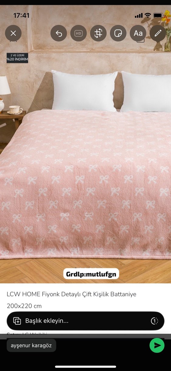 LCW HOME çift kişilik battaniye, yumuşak pastel pembe renkte, zarif fiyonk detayları ile yatak odanıza şıklık katar. ️