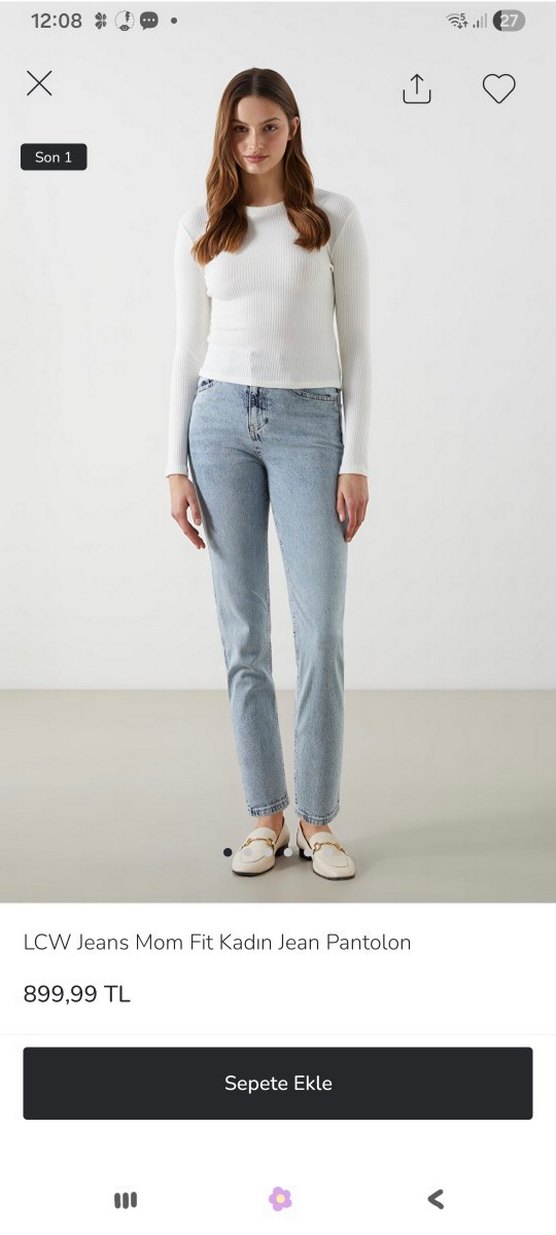 LCW Jeans Mom Fit kadın jean pantolon, normal boy ve regular fit kesimde. Düz, desen içermeyen, günlük kullanıma uygun rahat ve şık bir model. Sorunsuz aktif satışta olan ürün 2 kere giyildi paçası kısaltıldı bel tam tur 99 boy belden 95 paça 17