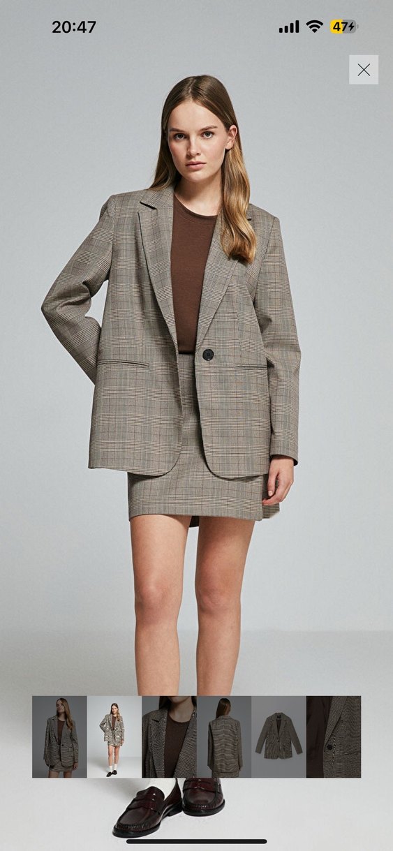 Bej ekose desenli, regular fit, normal uzunlukta midi blazer. Yumuşak sentetik kumaştan, uzun kollu ve kesik yaka detaylı, ofis ve sokak stiline uygun şık bir parça. ✨