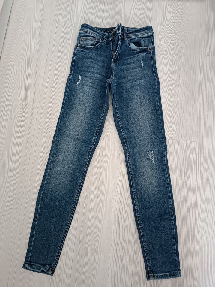 Kadınlar için mavi denimden üretilmiş, regular fit ve küçük yırtık detaylı, günlük kullanıma uygun rahat jean pantolon. Bedeni görselde mevcut.
