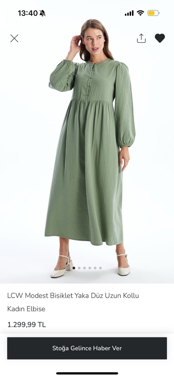 Khaki renkte, keten kumaştan yapılmış, pilili detaylara sahip uzun kollu ve bisiklet yaka bol kesim elbise. Minimalist ve rahat şıklık için uygundur. Boyu:130 Kol boyu:58 Genişlik:58